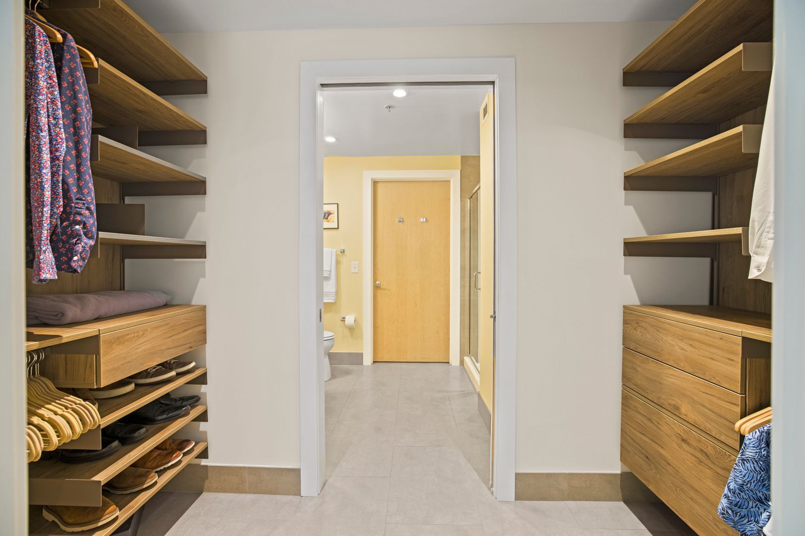 Walk-Through Closet w/ Custom Storage System in Primary Bedroom